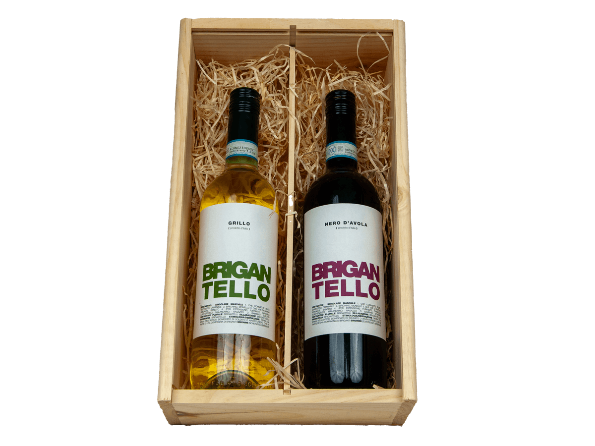 Dit wijngeschenk van Brigantello Sicilia bestaat uit twee mooie wijnen, namelijk de Brigantello Nero d’Avola & de Brigantello Grillo.